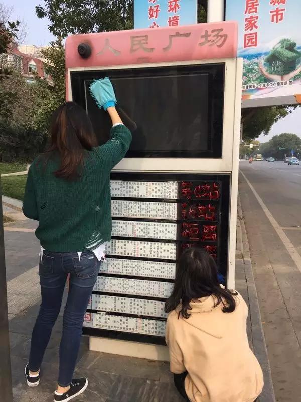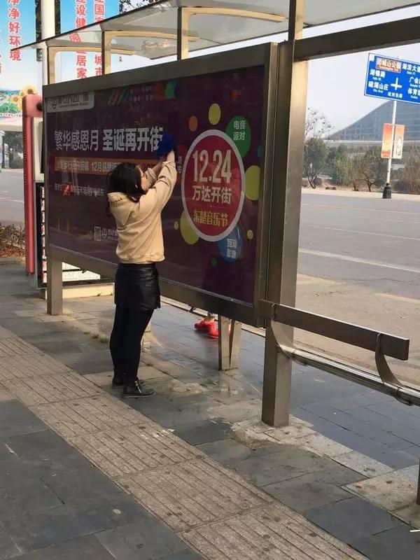 公交車,是城市流動的風(fēng)景,而公交站臺則是城市文明的窗口。此次文旅投員工的清掃重點(diǎn)是團(tuán)城山段的雙向公交站臺。