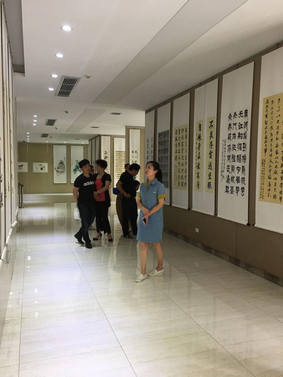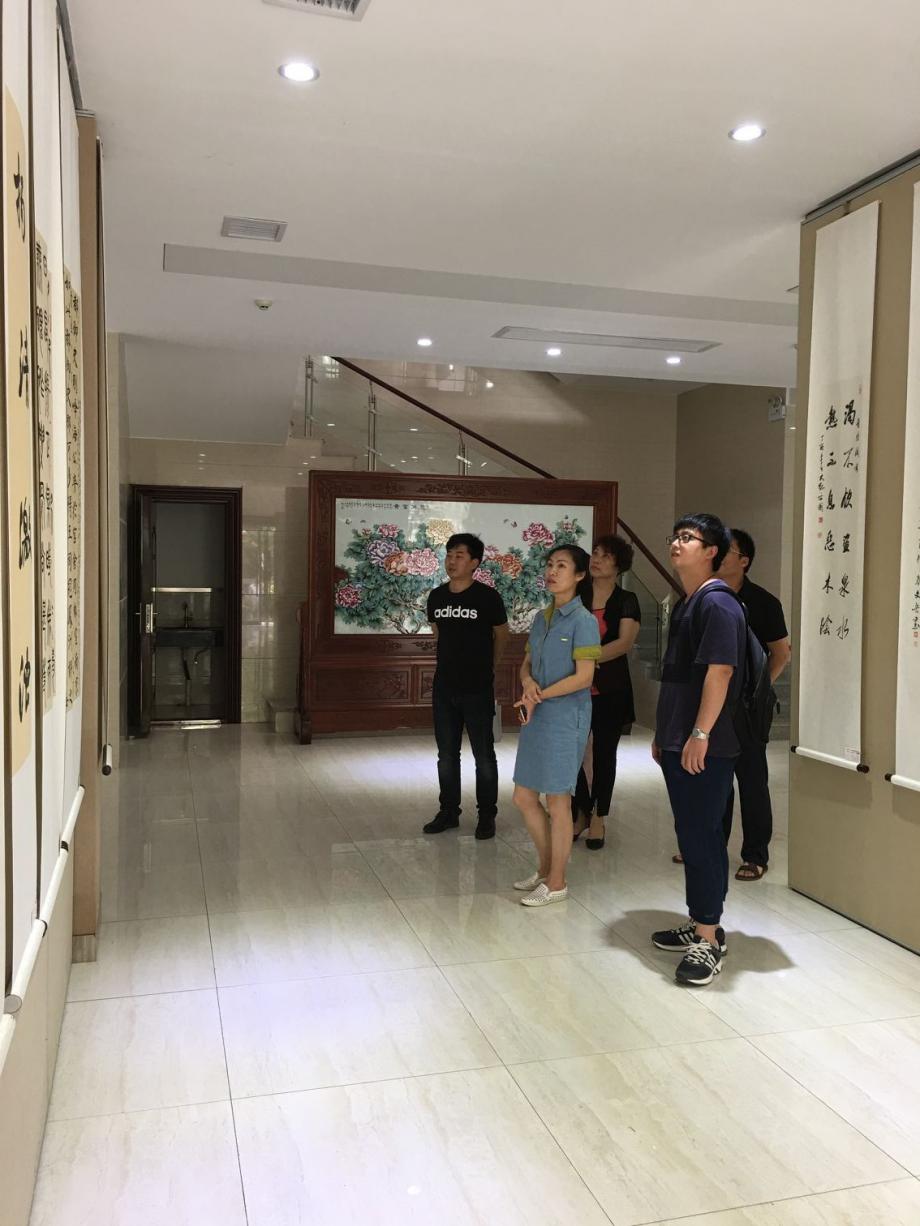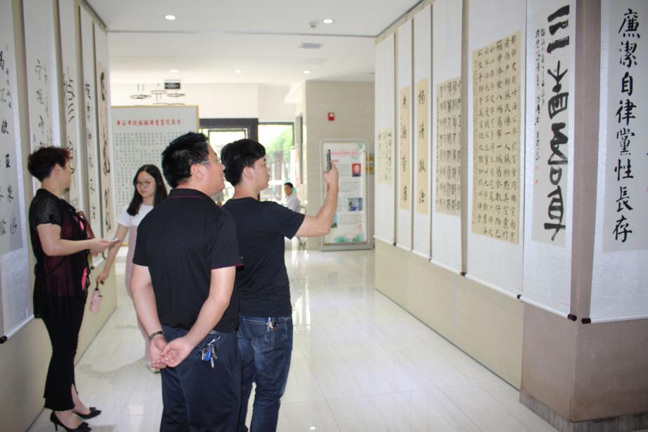 (展覽現(xiàn)場文旅投公司員工在一幅幅精美的書法和清雅的繪畫前駐足許久,認真觀摩)