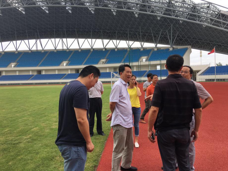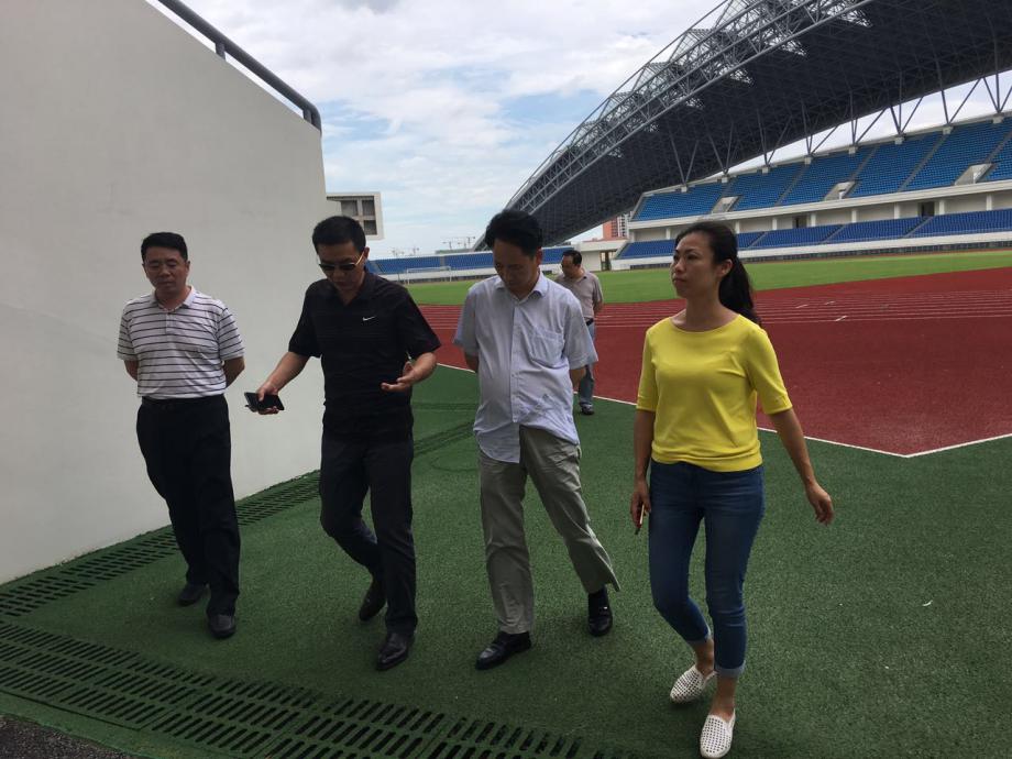 (黃岡市體育局副局長(zhǎng)汪敏向余福安一行介紹黃岡市體育中心的委托運(yùn)營(yíng)模式)