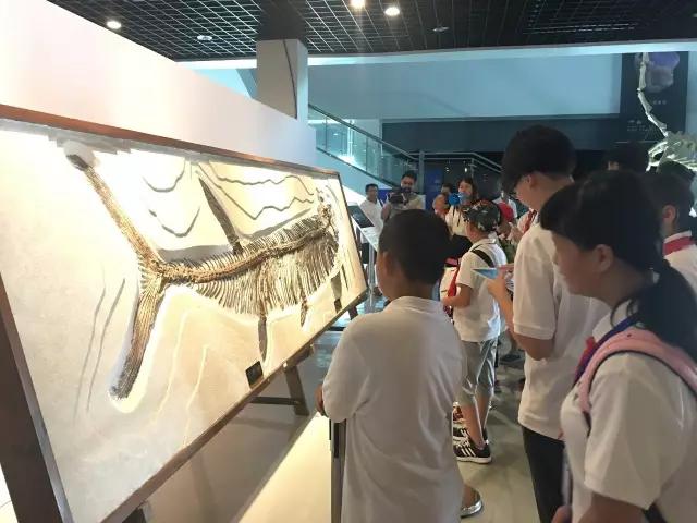 在古生物化石館,孩子們被億萬(wàn)年前的化石標(biāo)本和生物模型所震撼