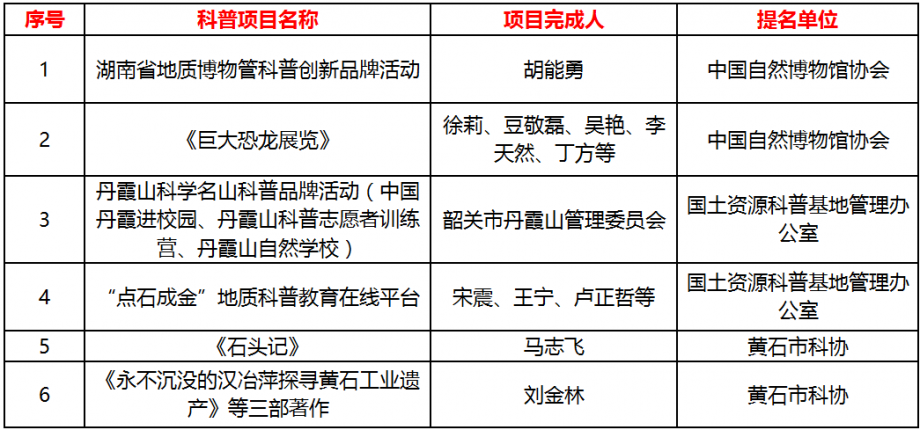 地礦科普優(yōu)秀成果獎:一等獎1名,二等獎5名,三等獎6名。