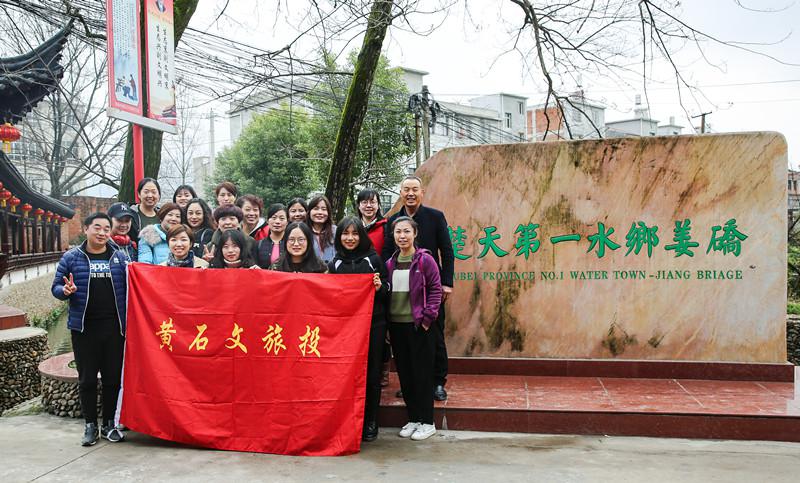 “楚天第一水鄉(xiāng)姜硚”標(biāo)識(shí)牌前的合影