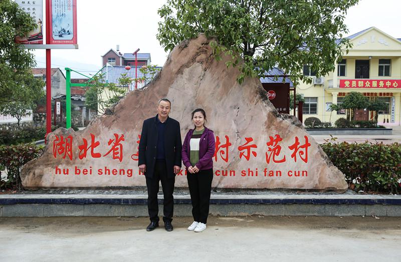 文旅投公司黨支部書記黃海燕同志和姜硚村黨支部書記左可龍?jiān)?/span>“湖北省美麗鄉(xiāng)村示范村”前合影留念