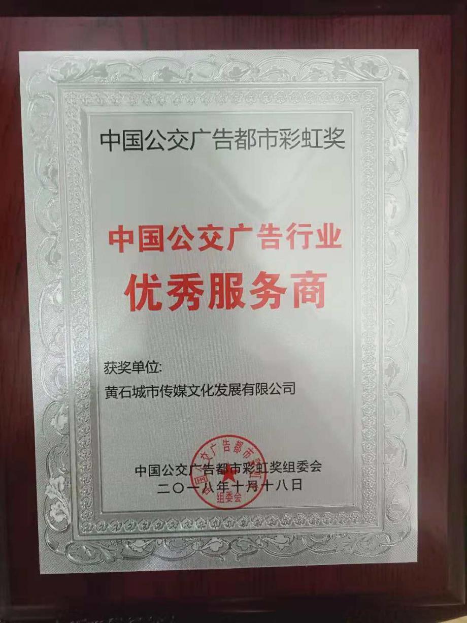 2018年10月17日,在湖南長(zhǎng)沙召開(kāi)了中國(guó)公交廣告第二屆聯(lián)誼會(huì)暨品牌競(jìng)合力峰會(huì),全國(guó)各市地公交廣告商有300多家參會(huì)。黃石城市傳媒文化發(fā)展有限公司榮獲“中國(guó)公交廣告行業(yè)優(yōu)秀服務(wù)商”稱號(hào)。此證書(shū)的取得,不僅是一種榮譽(yù),更是一種責(zé)任,城市傳媒將繼續(xù)秉承緊跟市場(chǎng)、服務(wù)市場(chǎng)的原則,進(jìn)一步提高廣告業(yè)務(wù)能力及服務(wù)水平,充分發(fā)揮優(yōu)勢(shì)作用,力爭(zhēng)成為公交廣告行業(yè)的開(kāi)拓者和創(chuàng)新者。