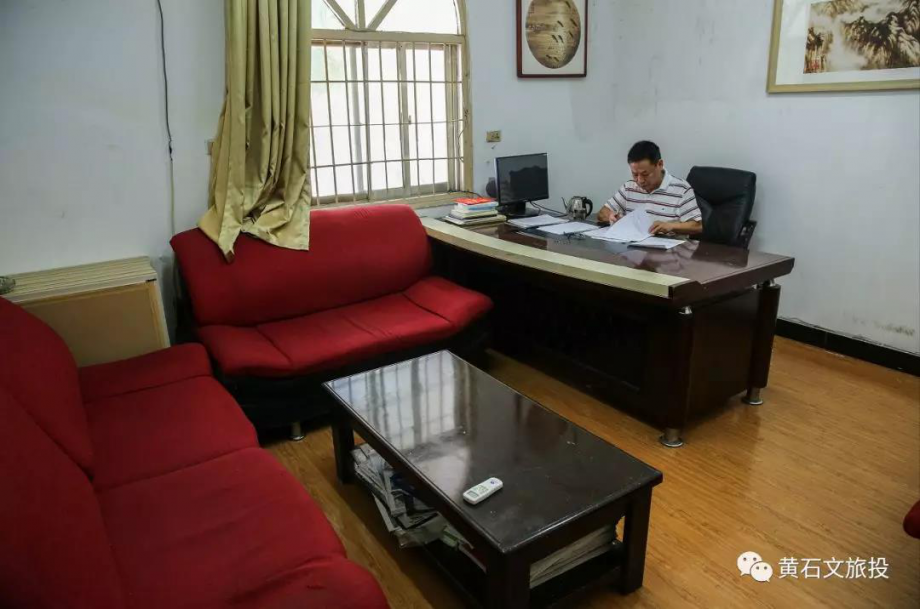 圖為陳海明辦公室。在沙發(fā)上加一個(gè)枕頭,就是一張床