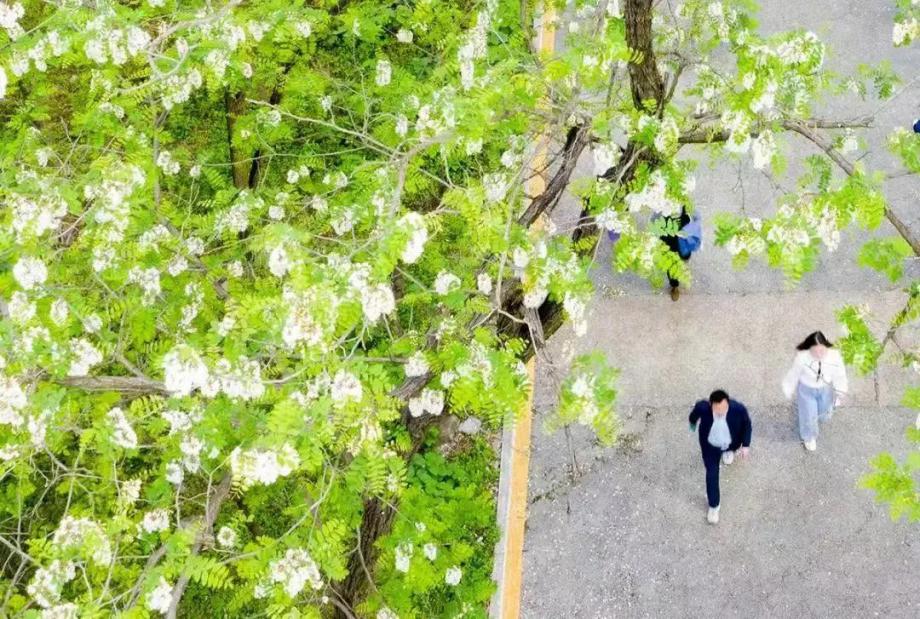 大街上飄滿槐花的香味兒